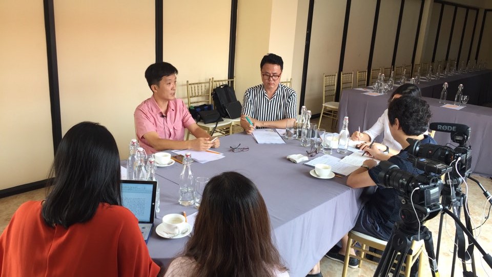 ▲KOFIH 김상균 소장(왼쪽)과 바탐방 도보건국장 Dr. Veoung Bunreth (오른쪽) 인터뷰 모습 @발전대안 피다