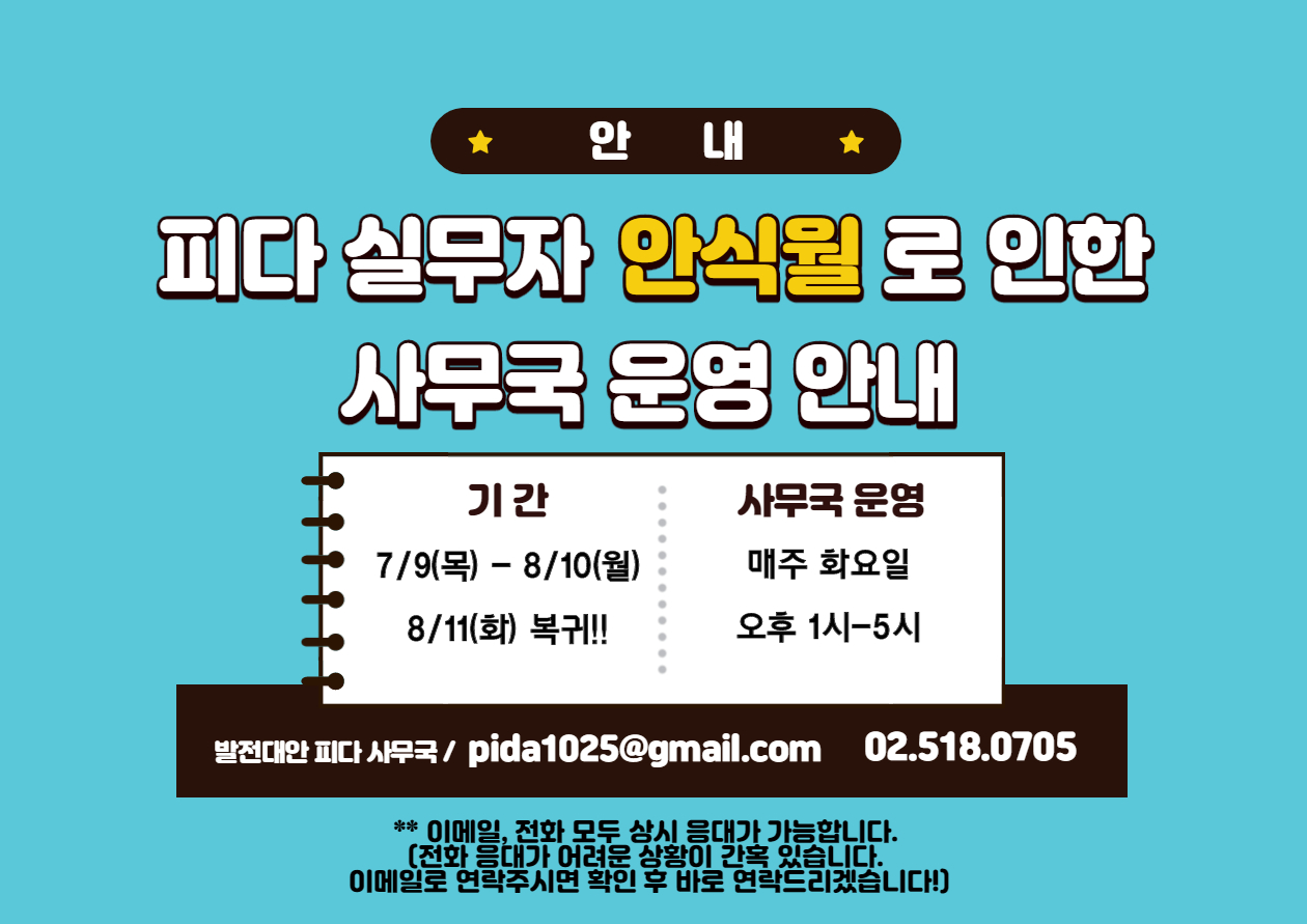한달 간의 시간동안 회원 여러분 및 피다를 찾는 많은 분들이 연락에 불편이 없도록